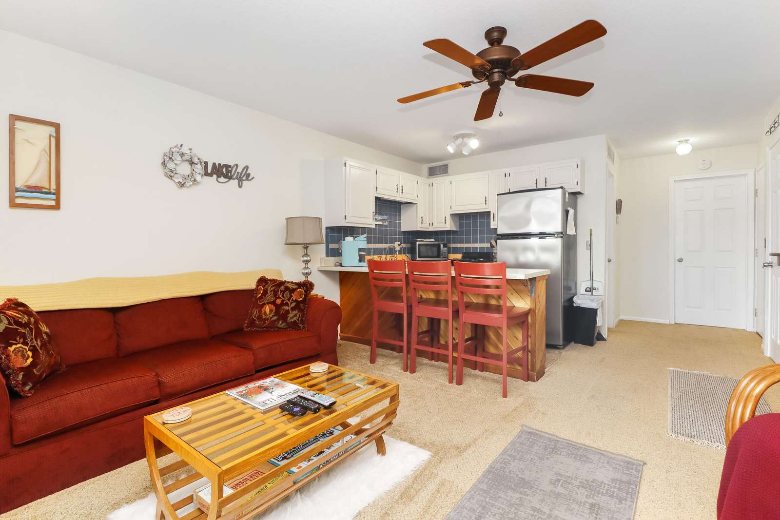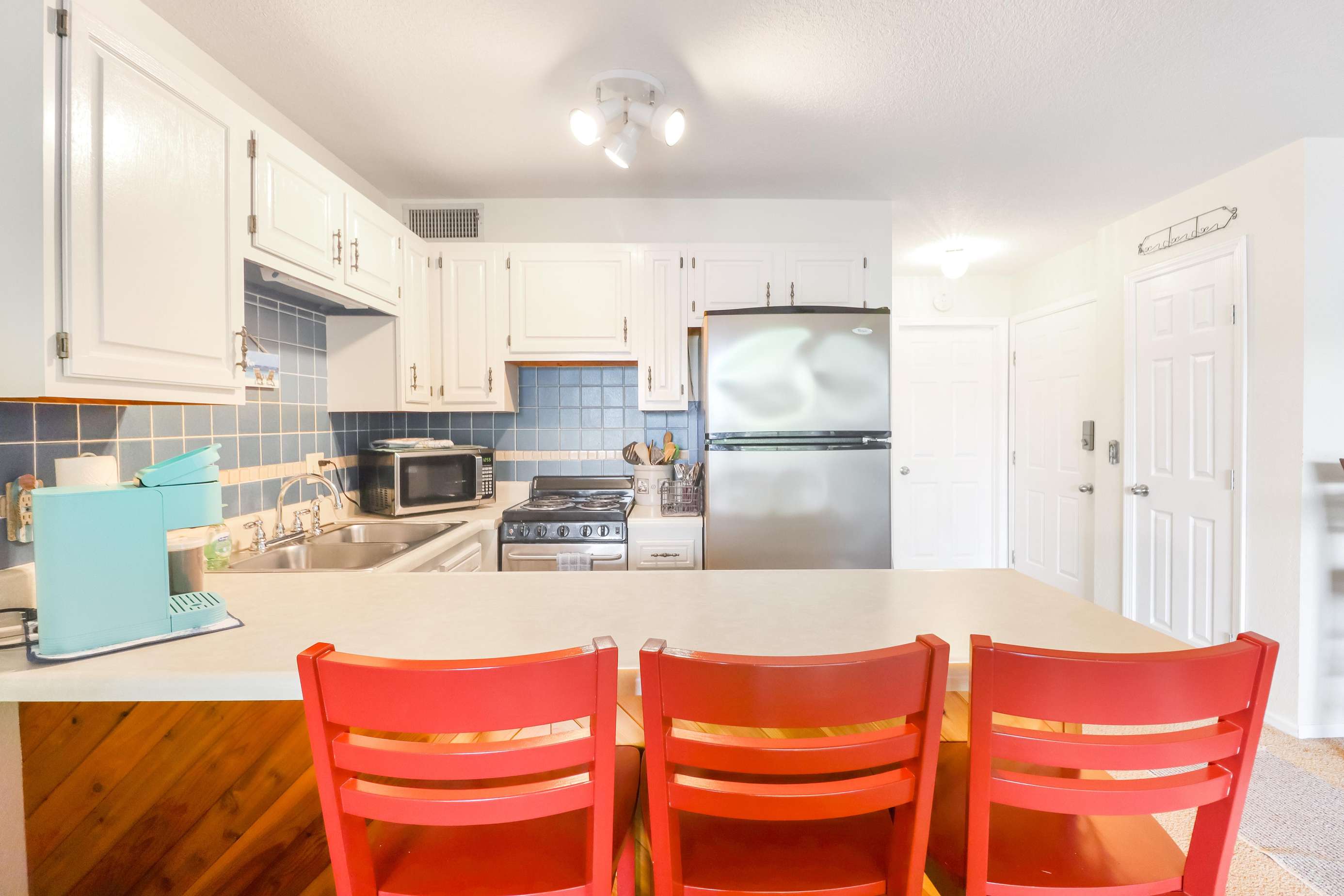* 1 Bedroom / 1 Bath – No stair unit with a queen bed in the bedroom and a sleeper sofa in the living room, accommodating up to 4 guests